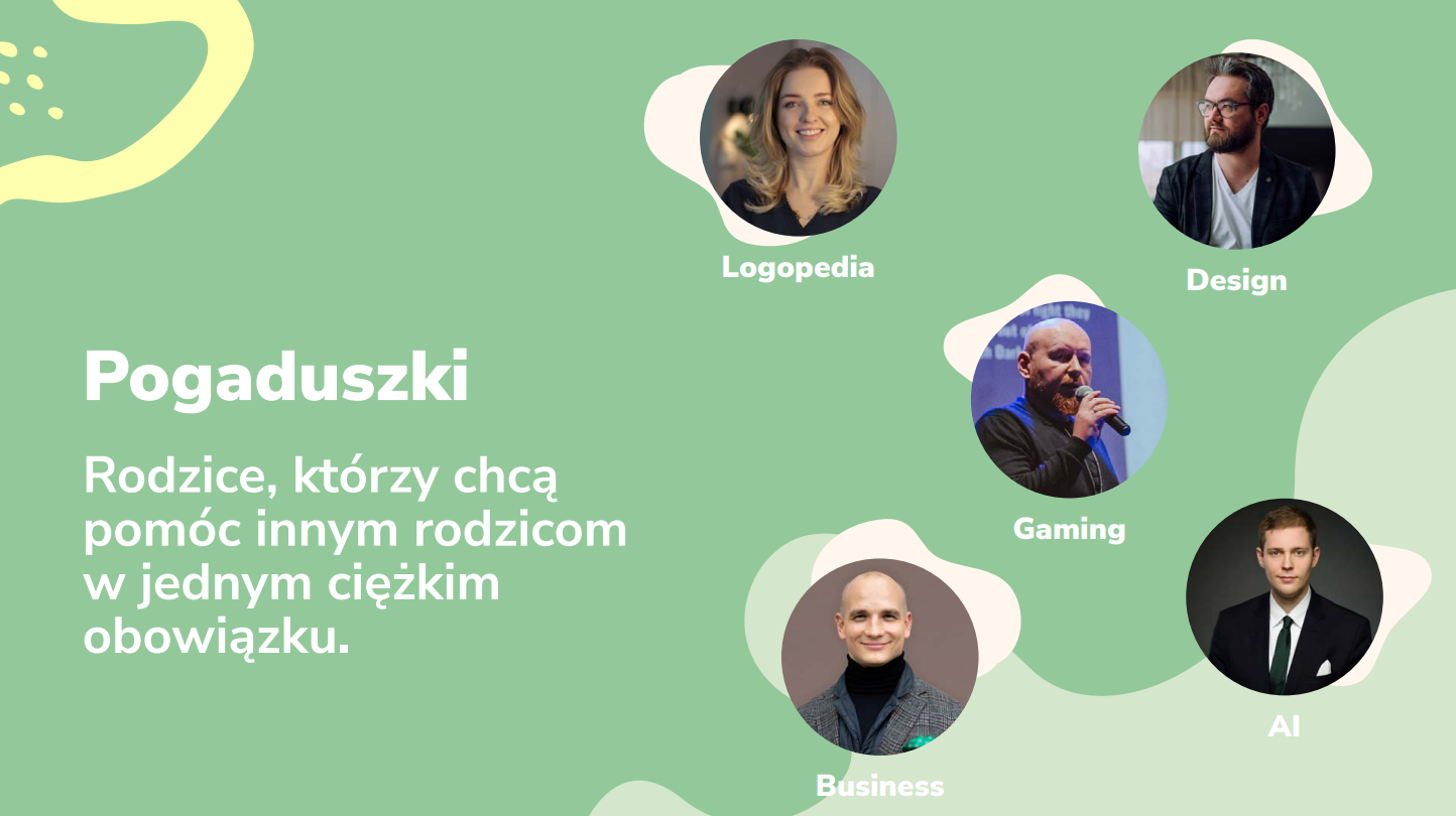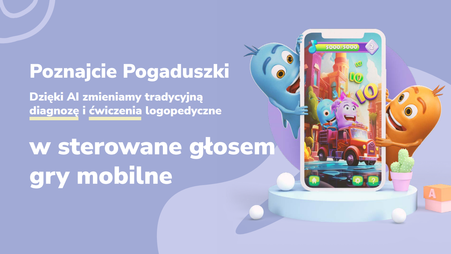 Pogaduszki to innowacyjna platforma logopedyczna łącząca AI, Gaming i Storytelli z tradycyjnymi metodami terapii. Celem projektu jest uczynienie terapii logopedycznej bardziej dostępną, efektywną i angażującą dla dzieci w wieku 3-10 lat. Grupa docelowa to logopedzi, rodzice oraz dzieci wymagające terapii logopedycznej, czyli ok 90% dzieci w Polsce.